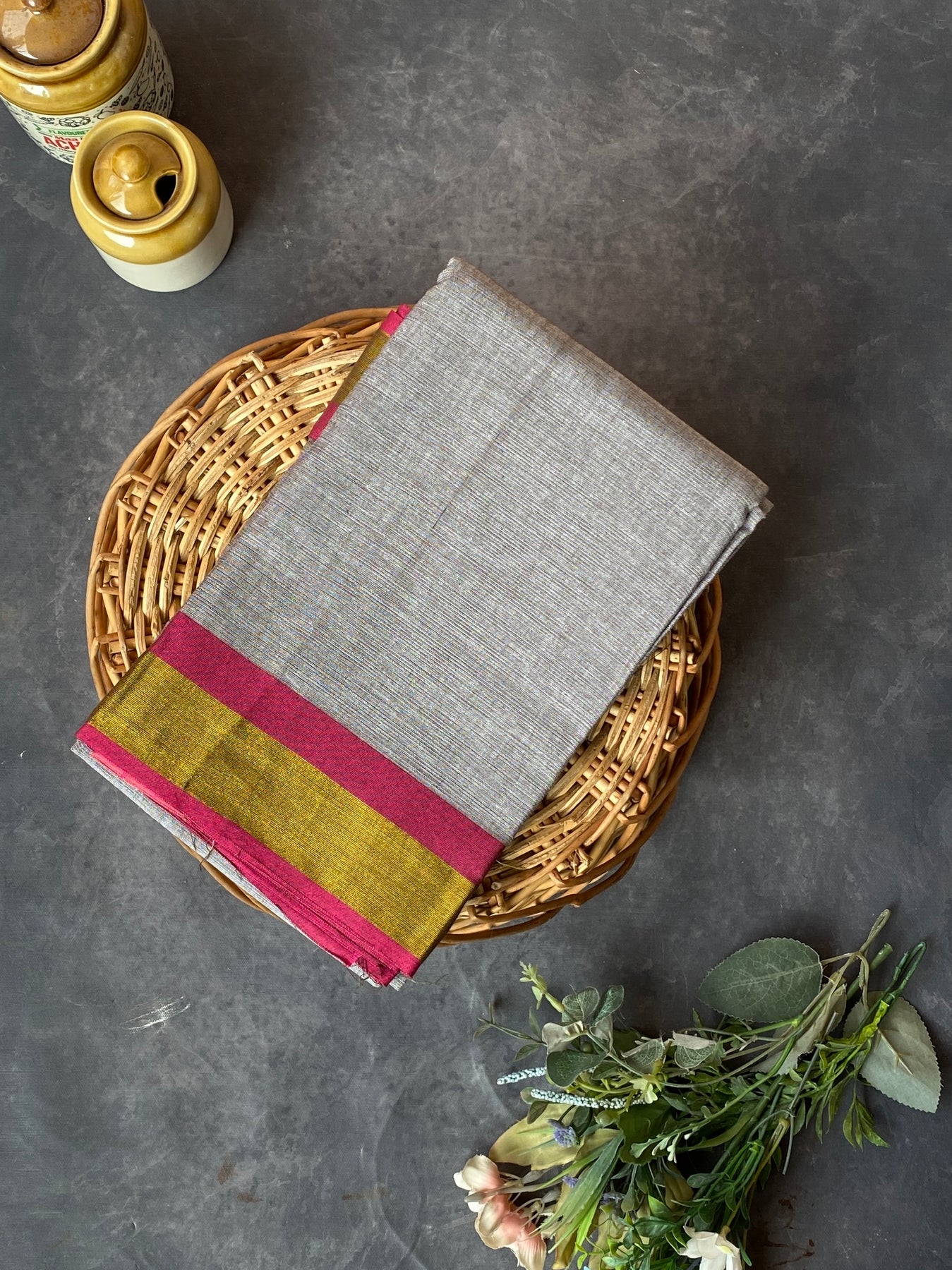 Traditional cotton practice sarees with zari borders.