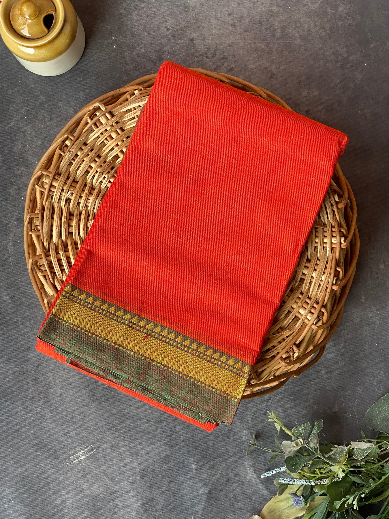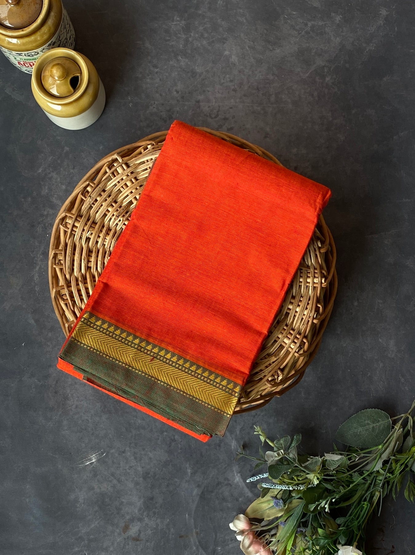 Traditional colour combination cotton practice sarees with bright contrast borders.