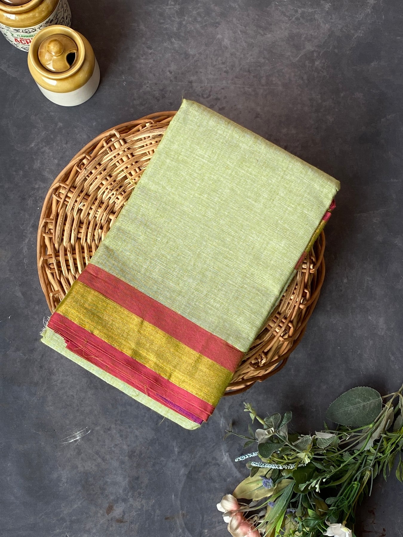 Traditional cotton practice sarees with zari borders.