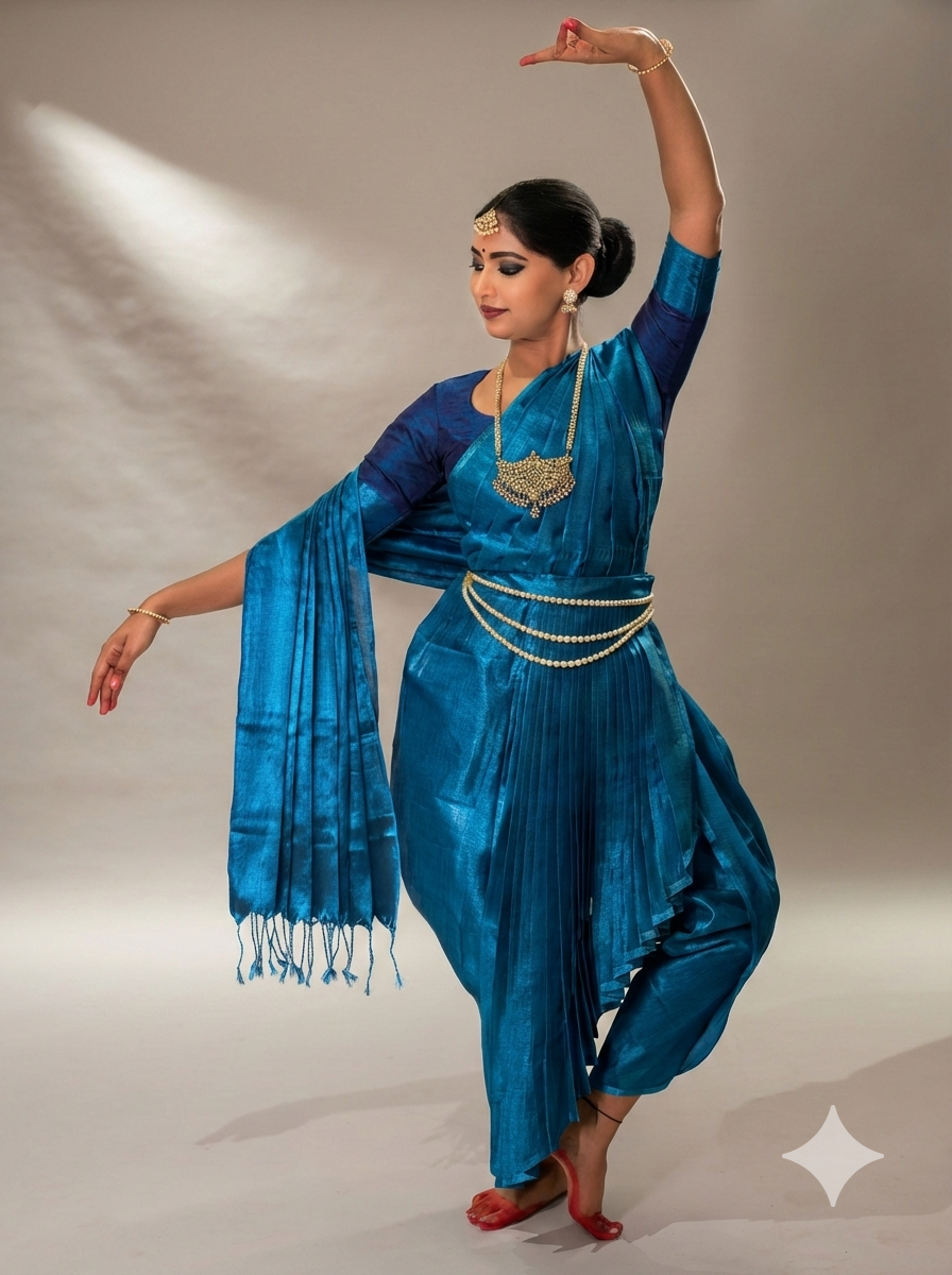 Introducing the Dhatu collection—a stunning series of Metallic Two-Tone Tissue Silk dance costume designed to elevate your performance.