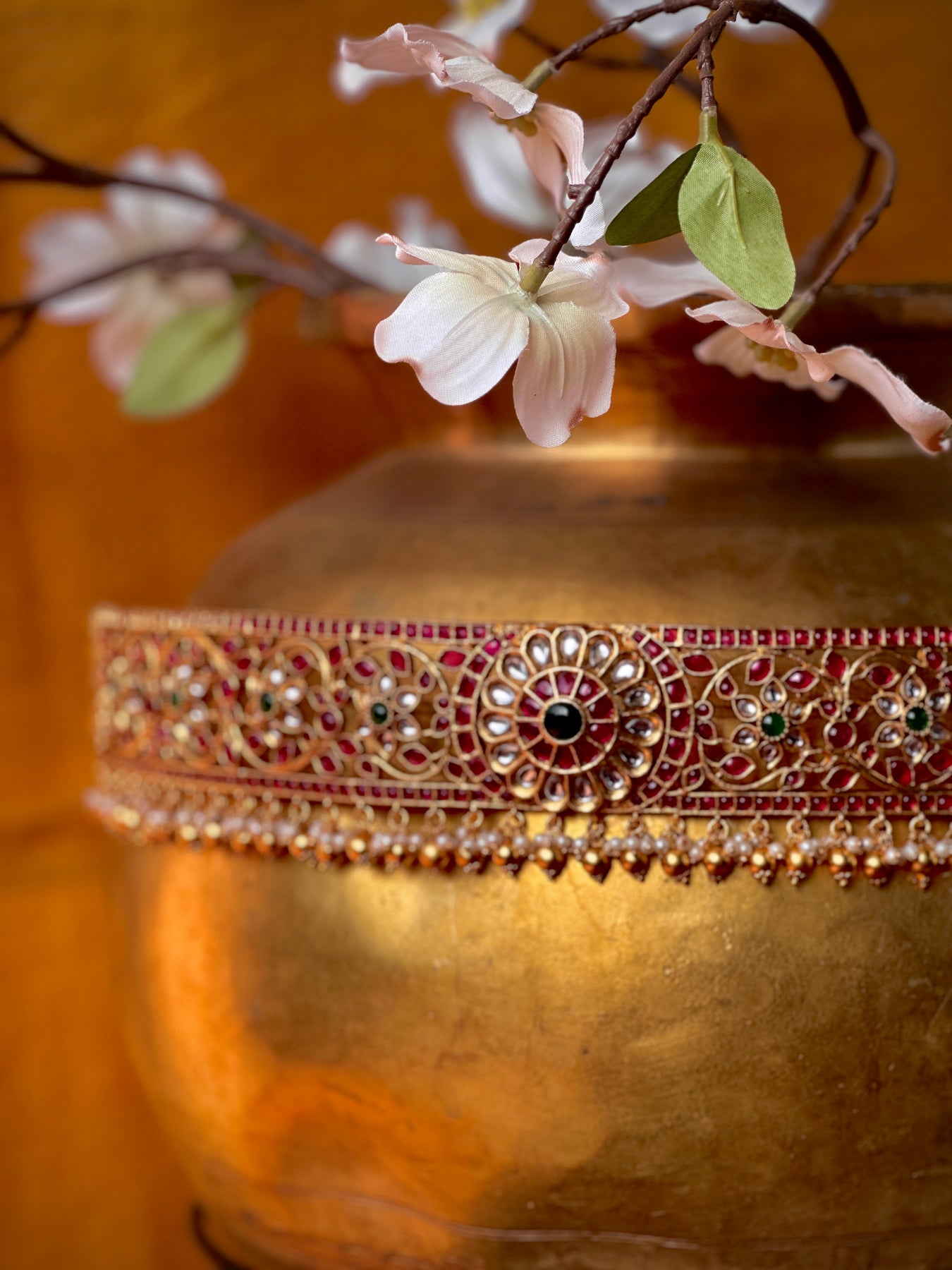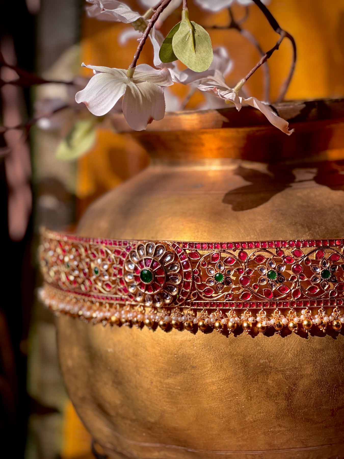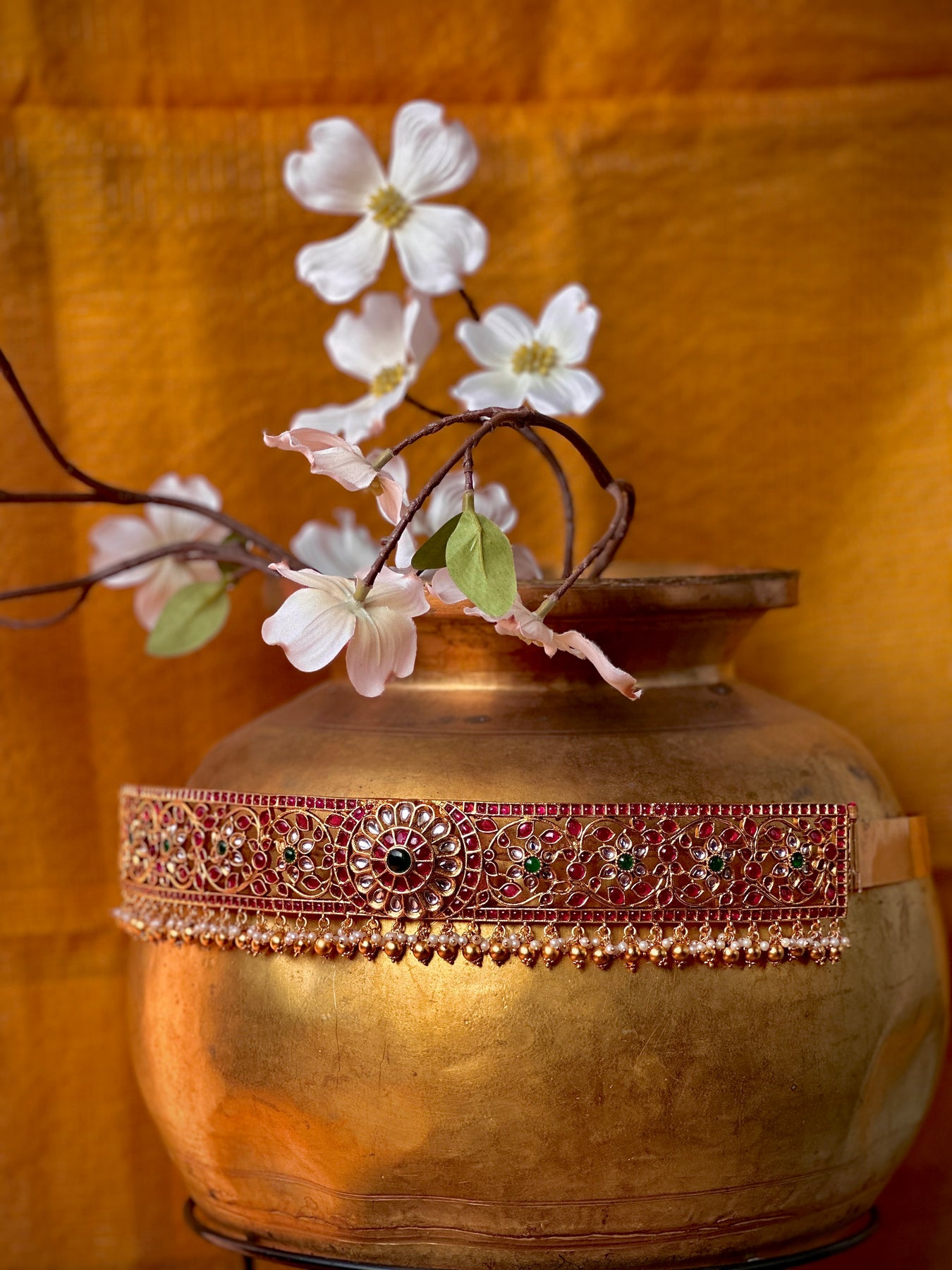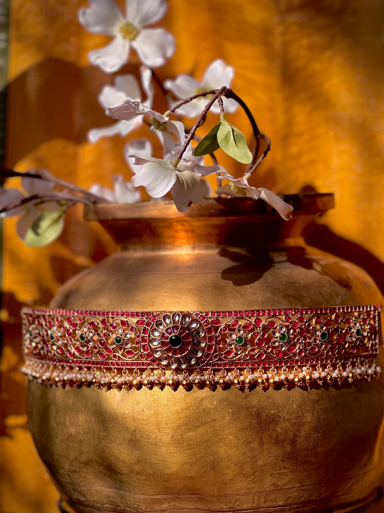 A beautiful filigree belt inlaid with kemp stones, will amp up any look to regal