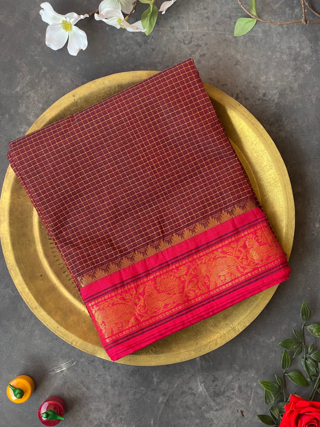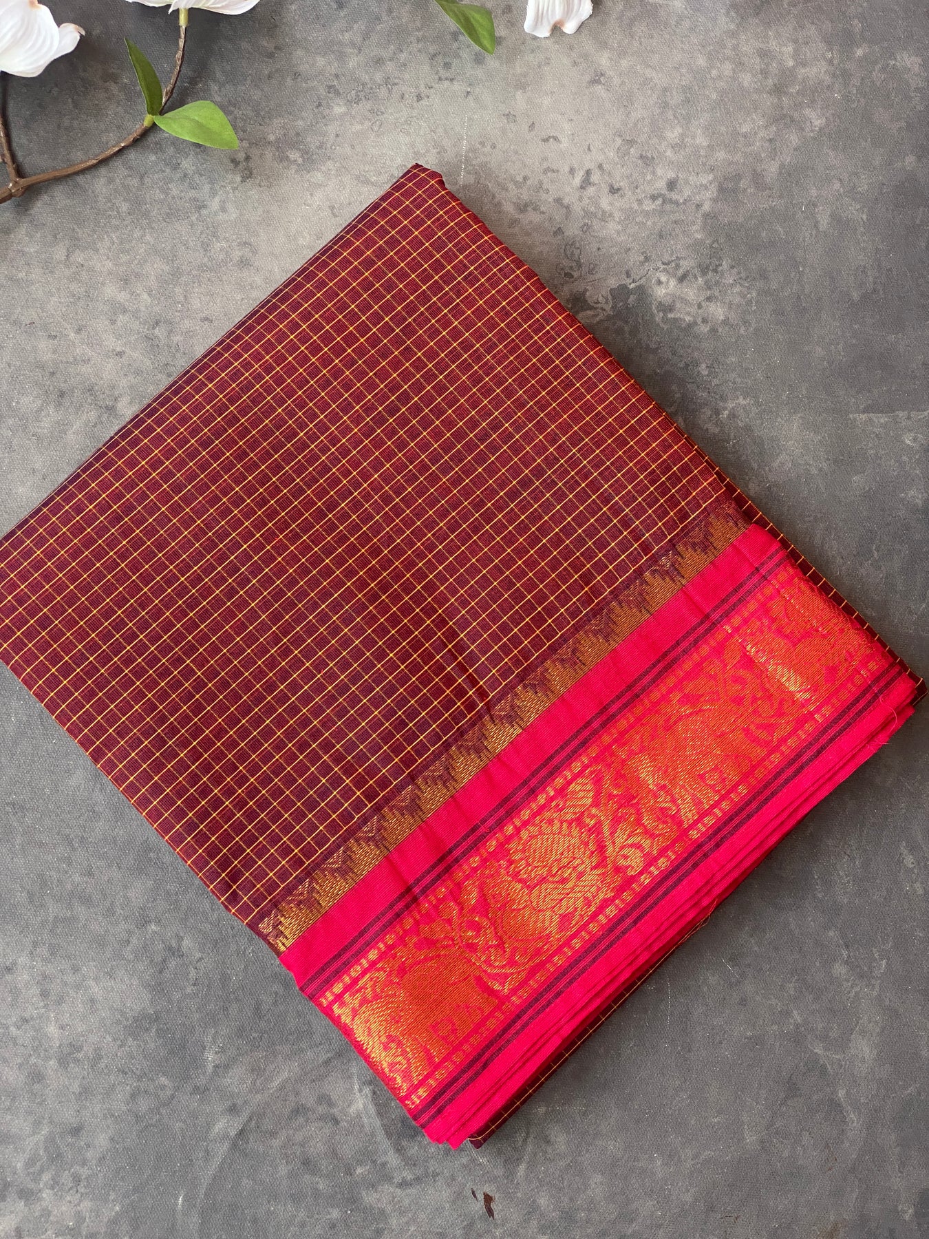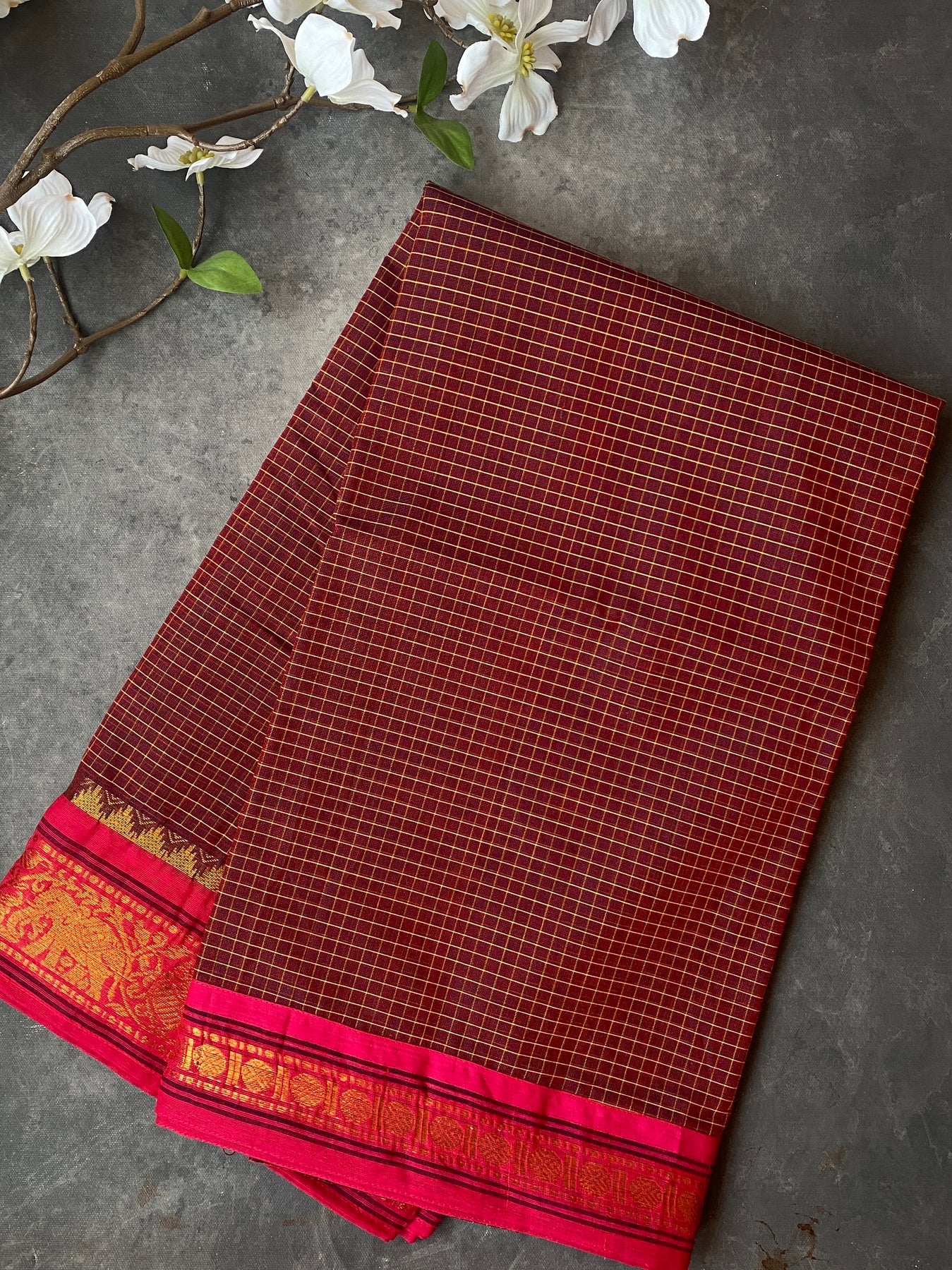 Maroon Breeze & Pink | Kanchi Cotton Practice Saree