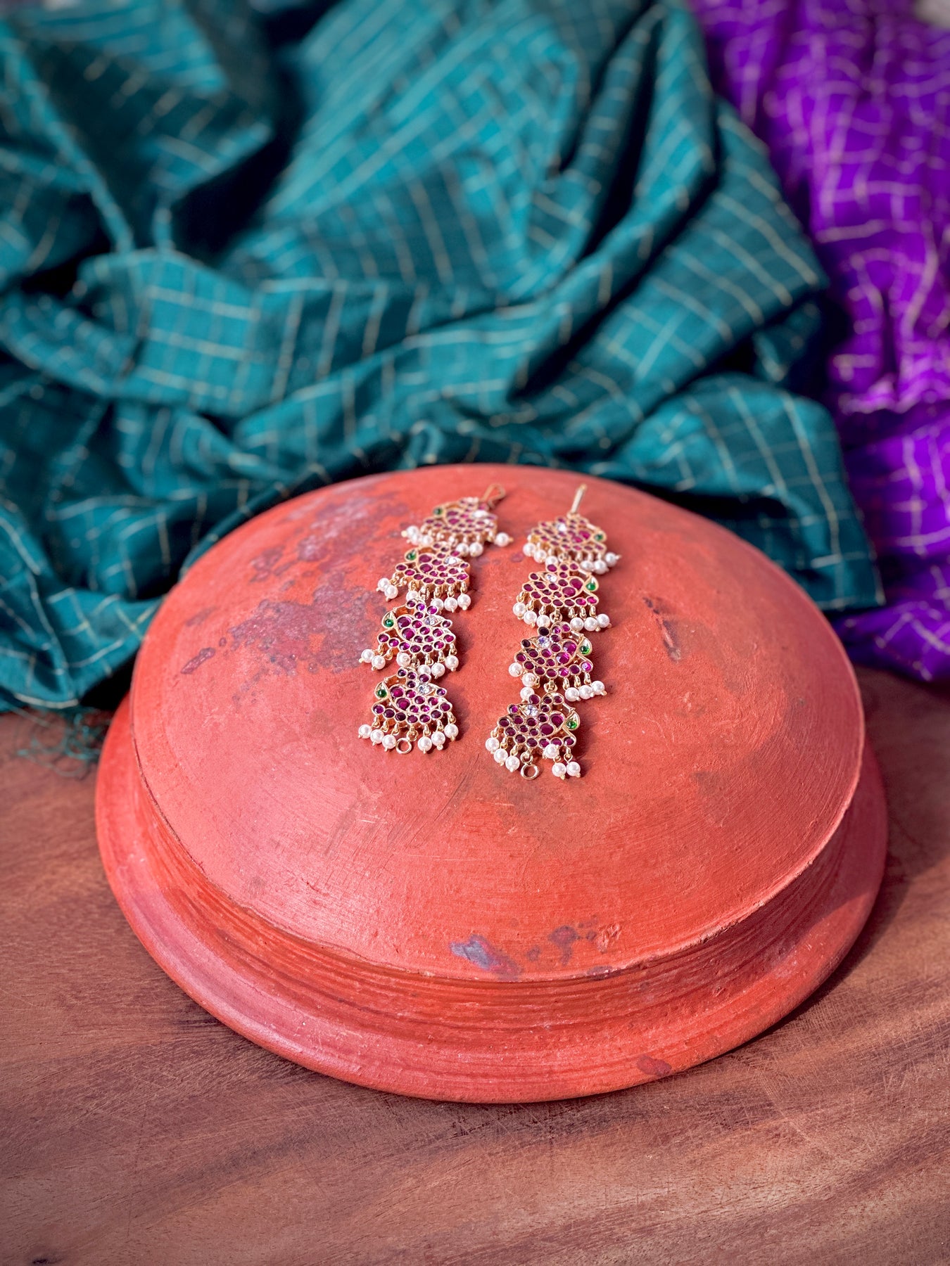 Experience the elegance of traditional temple jewellery with our premium quality brass and kemp stones. Specially crafted to offer an affordable alternative to temple silver jewellery, perfect for all dancers and jewellery enthusiasts.