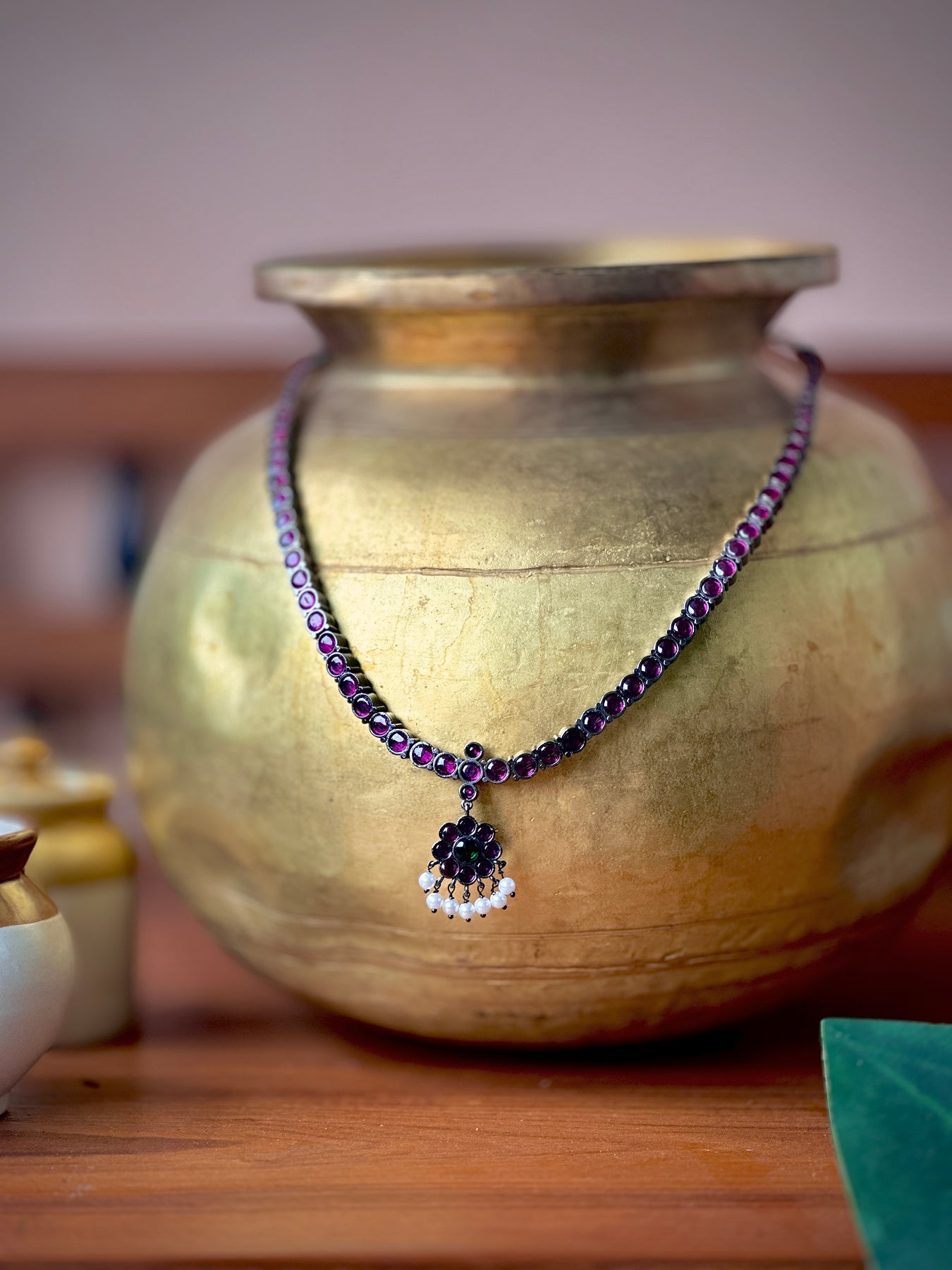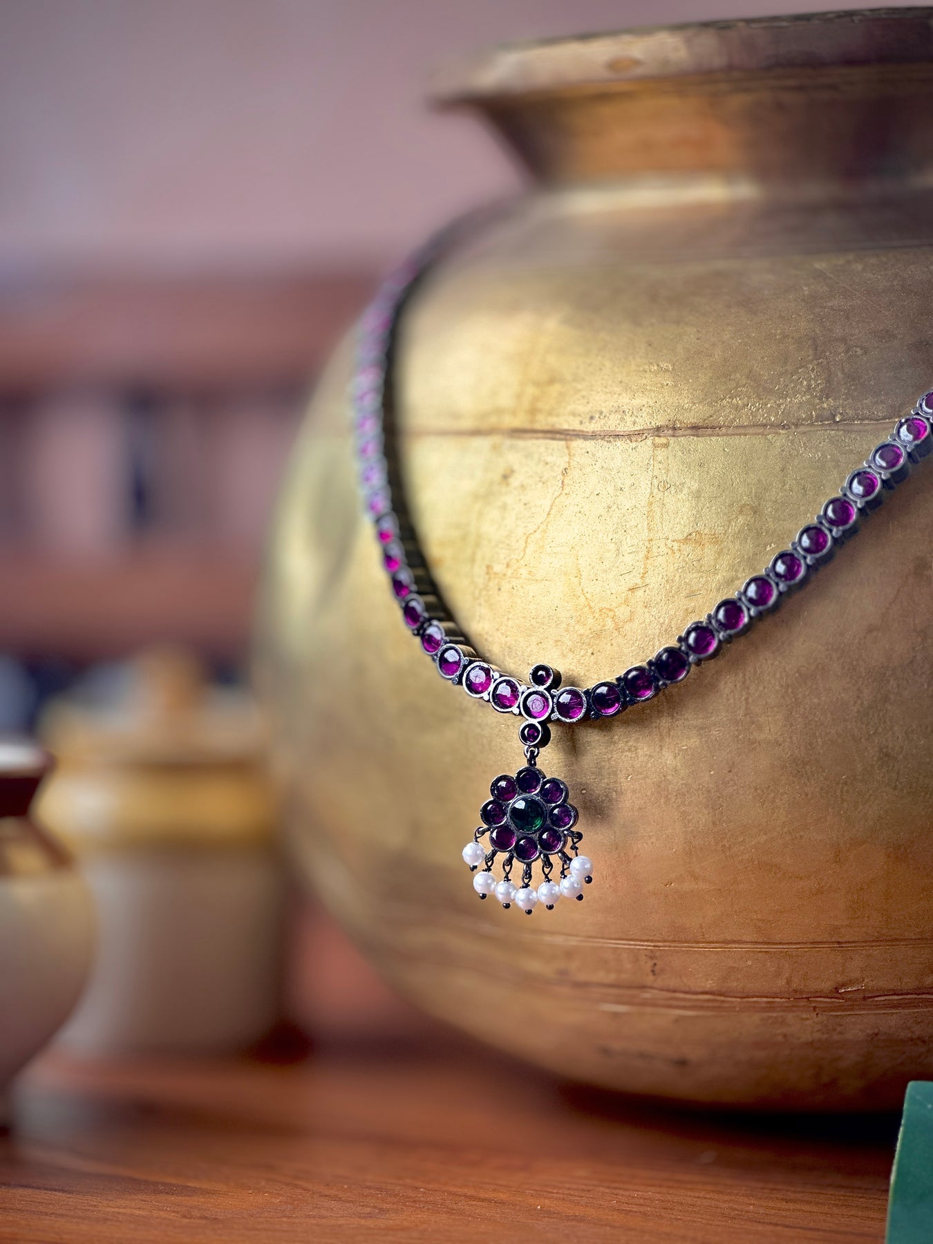 Regular price Rs. 9,500.00Elegant South Indian long chain (haram), a classic Aged temple jewellery piece worn in Bharatanatyam and Kuchipudi performances, and by Tamil brides for traditional grandeur."