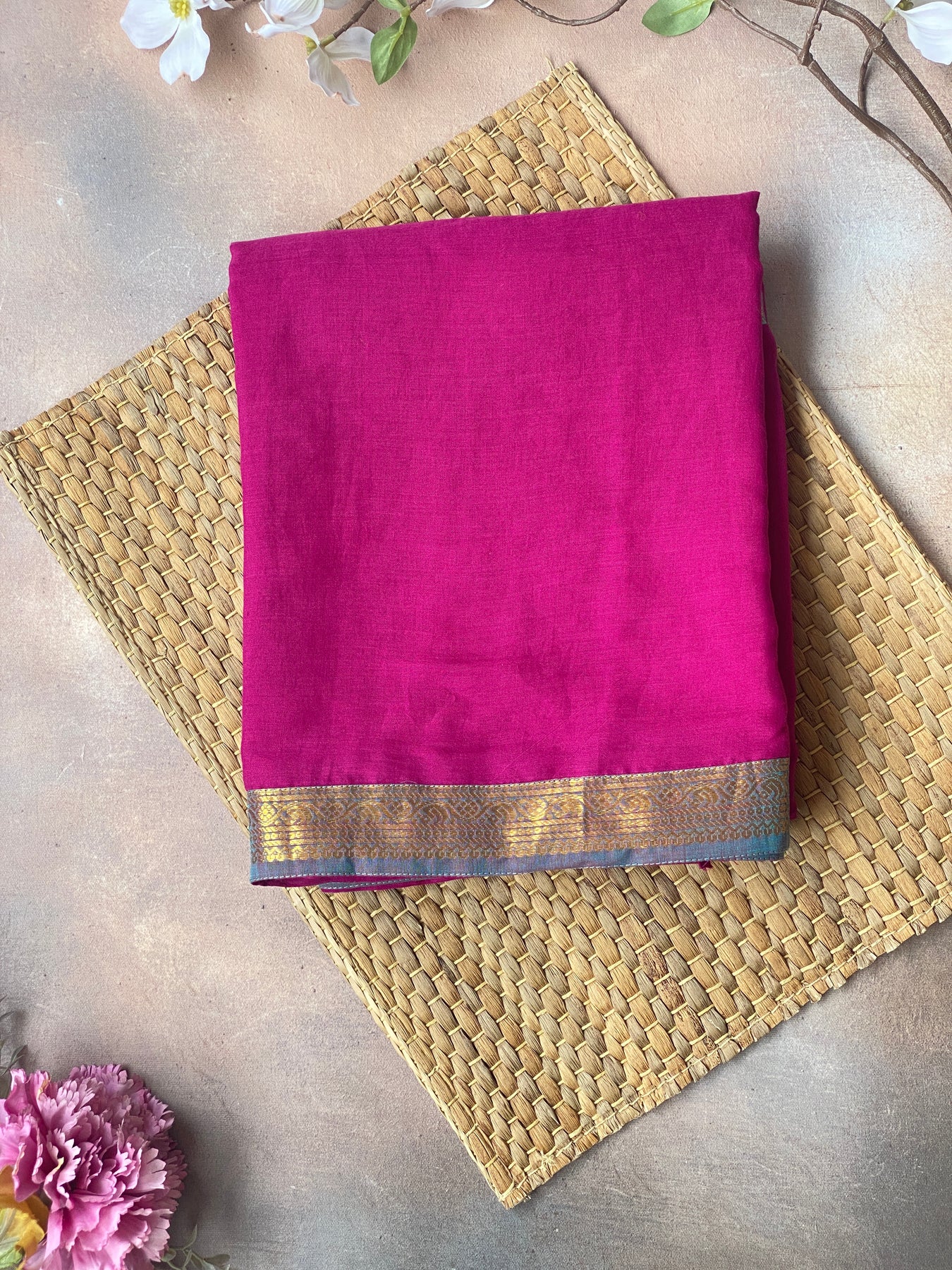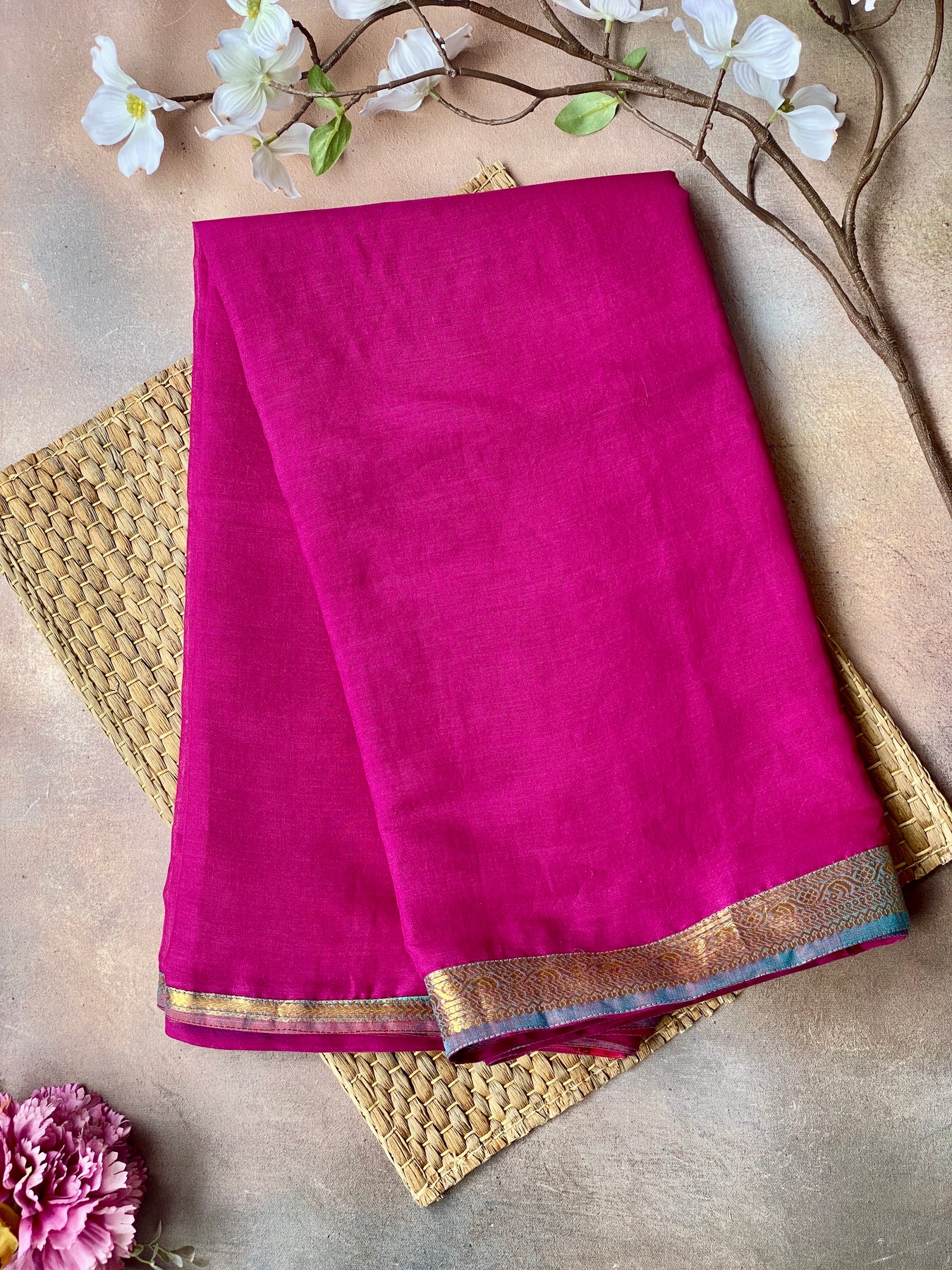 Bougainvillea & Blue | Cotton Practice Saree