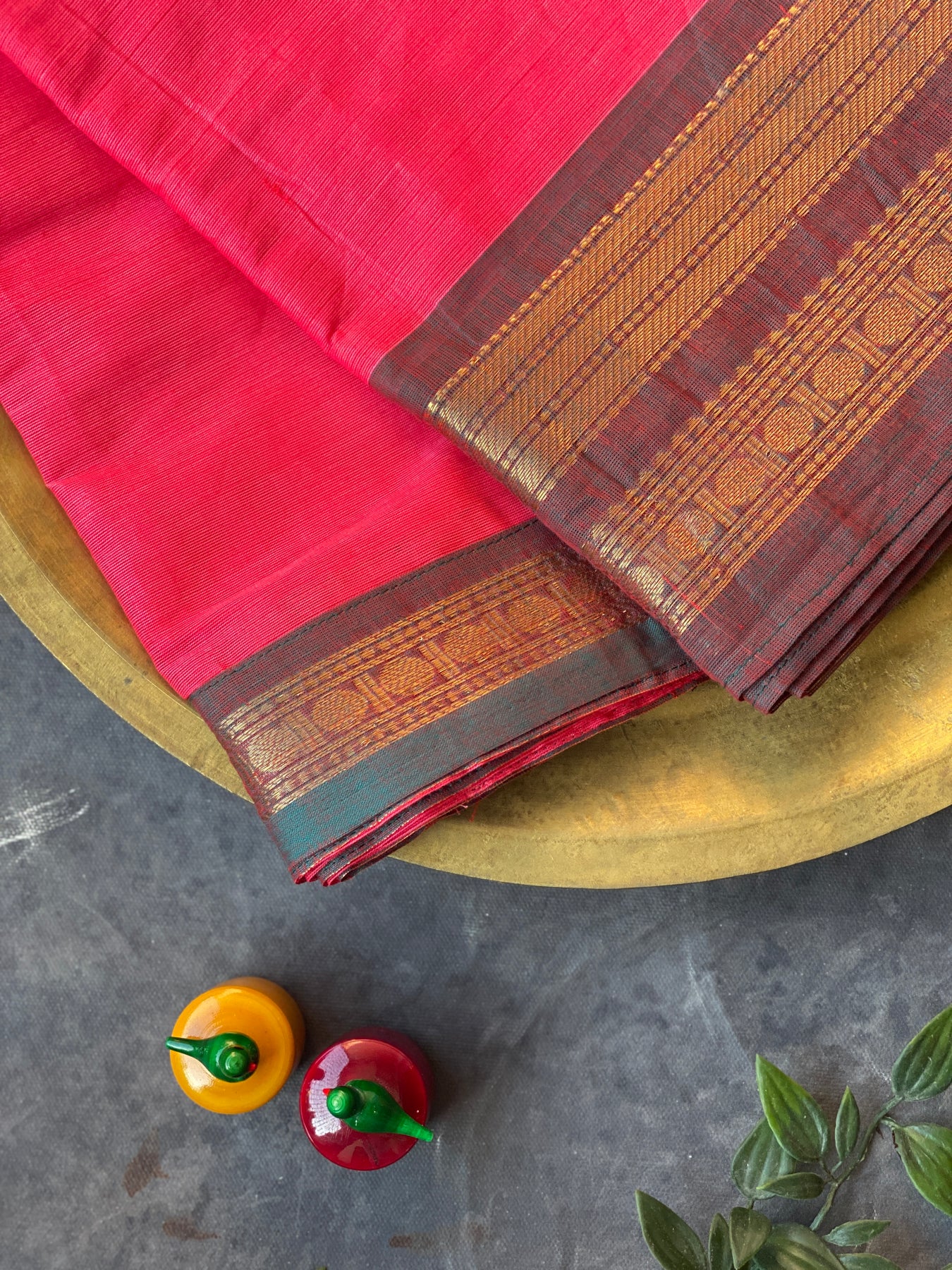 Experience the perfect blend of tradition and comfort with our Kanchi Cotton Practice Saree. Handwoven in the timeless style of Kanchipuram, this saree brings together lightweight cotton fabric and breathable, perfect for all-day comfort. The lightweight drape makes it ideal for practice.