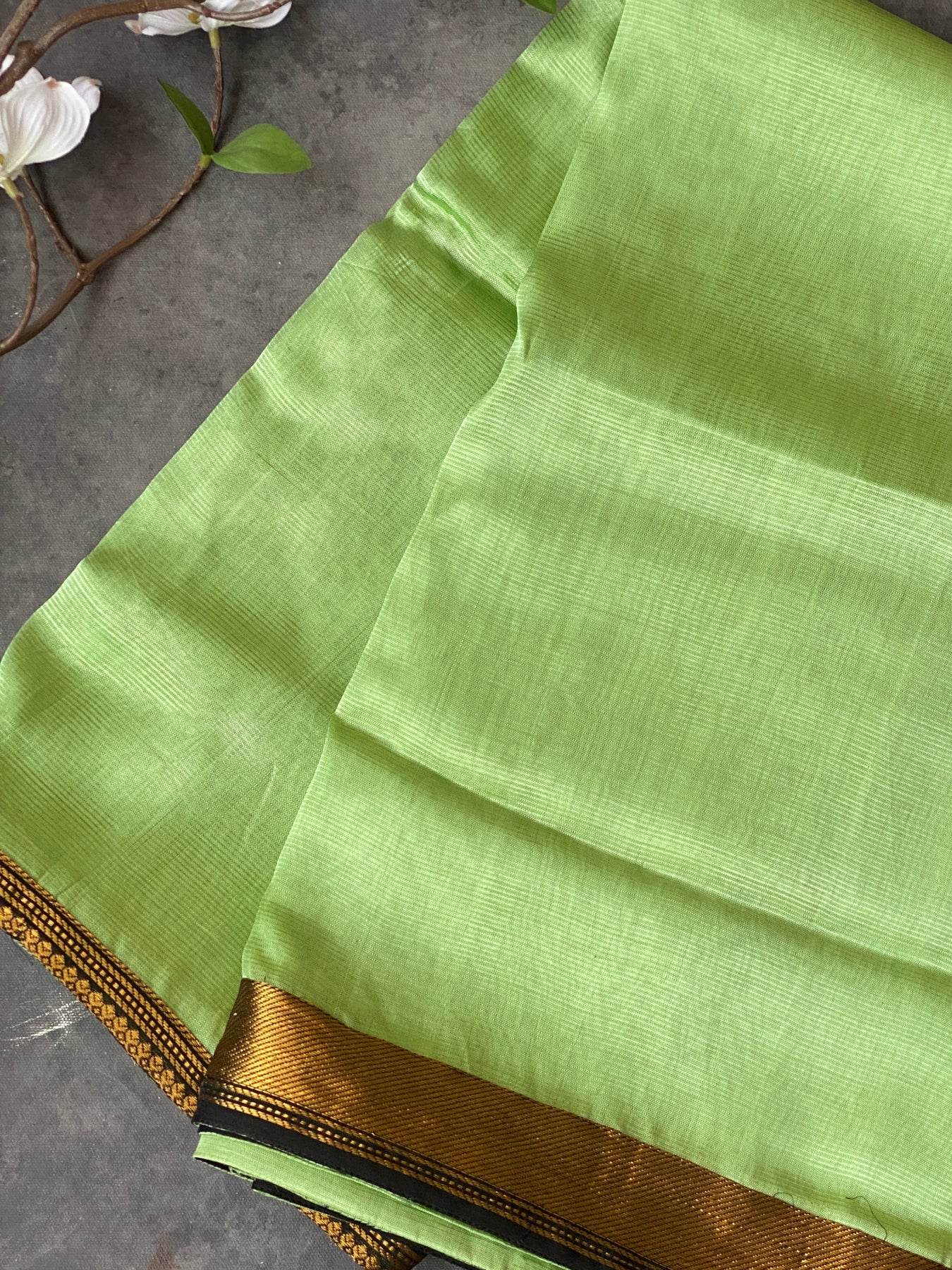 Lightweight and easy to drape, the saree allows free movement during long practice sessions while maintaining a graceful fall. The fabric absorbs sweat well, making it ideal for daily rehearsals. with classic Kanchi borders, it reflects timeless tradition with practical functionality
