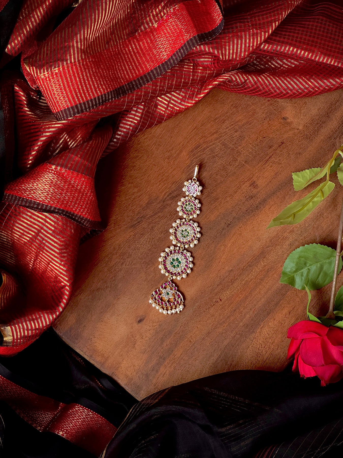 Regular price Rs. 7,975.00 Sale price Rs. 6,960.00 Save Rs. 1,015.00Traditional South Indian nethichutti, a stunning forehead ornament for Bharatanatyam and Kuchipudi dancers, also worn by Tamil brides for an elegant cultural statement.