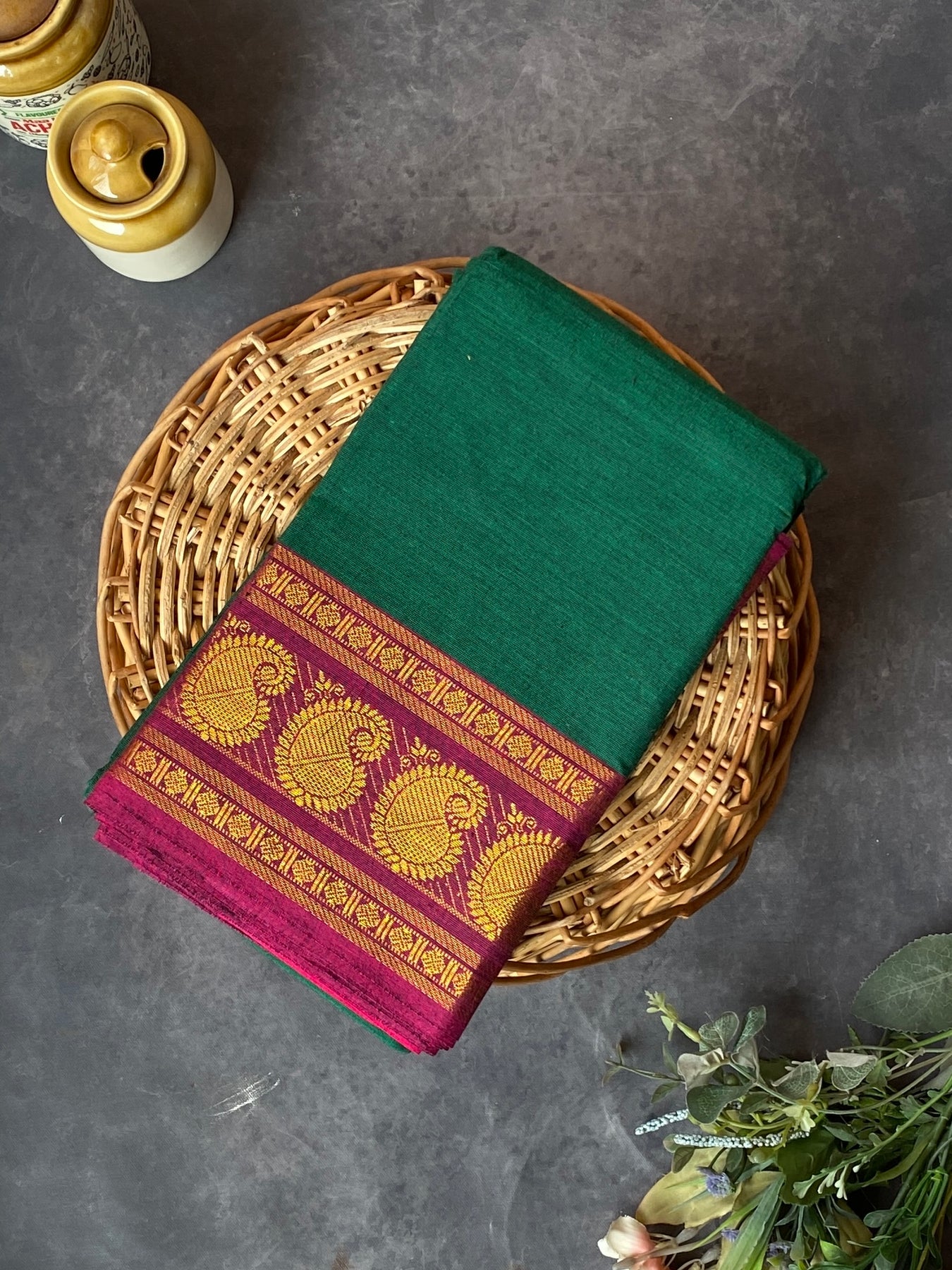 Traditional colour combination cotton practice sarees with checks and bright contrast woven borders.