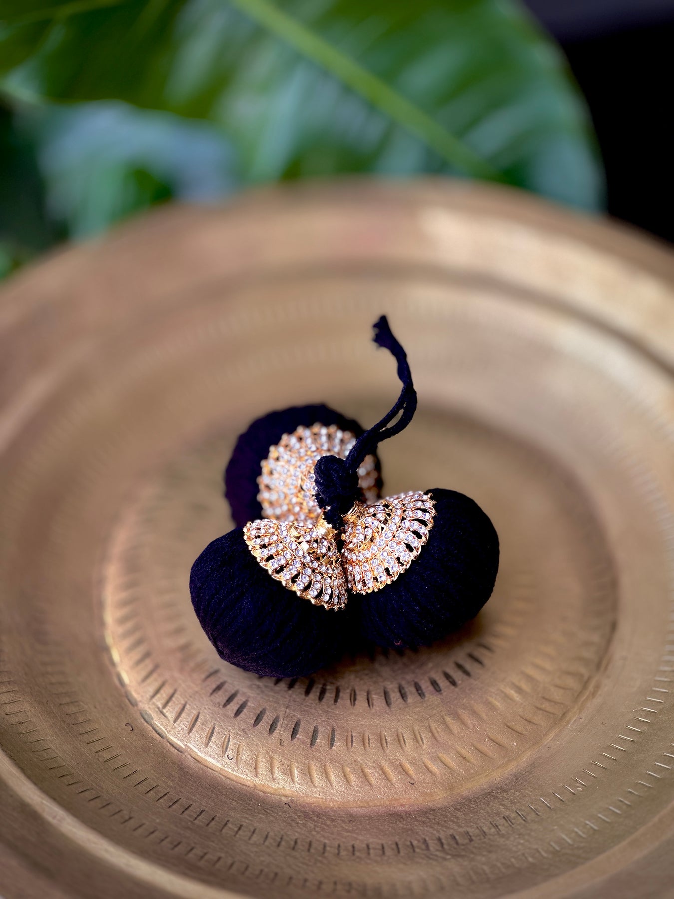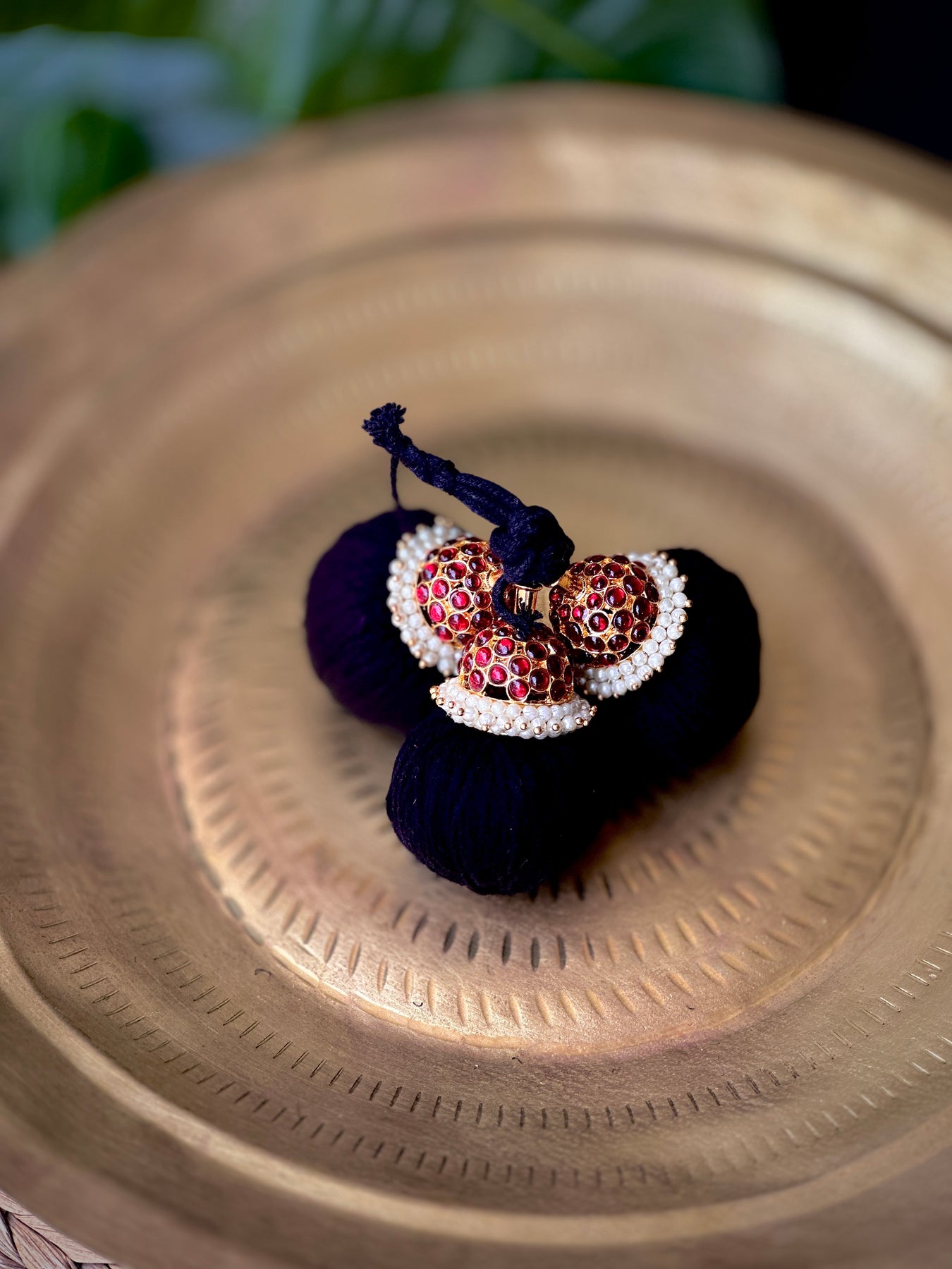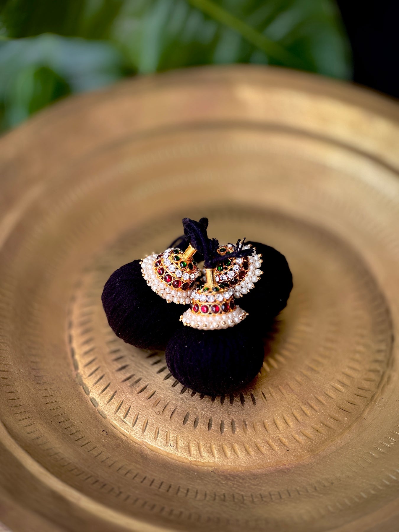 Classic black Kunjalam with pearl and stone embellishments accents adds grandeur and elegance to your outfit