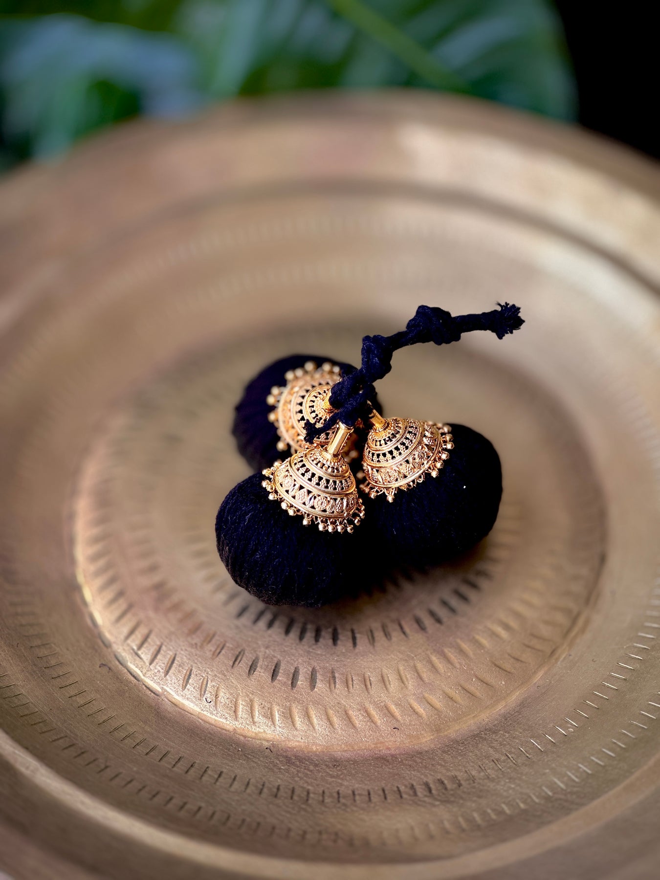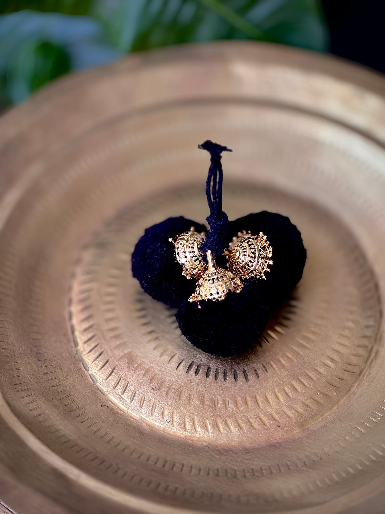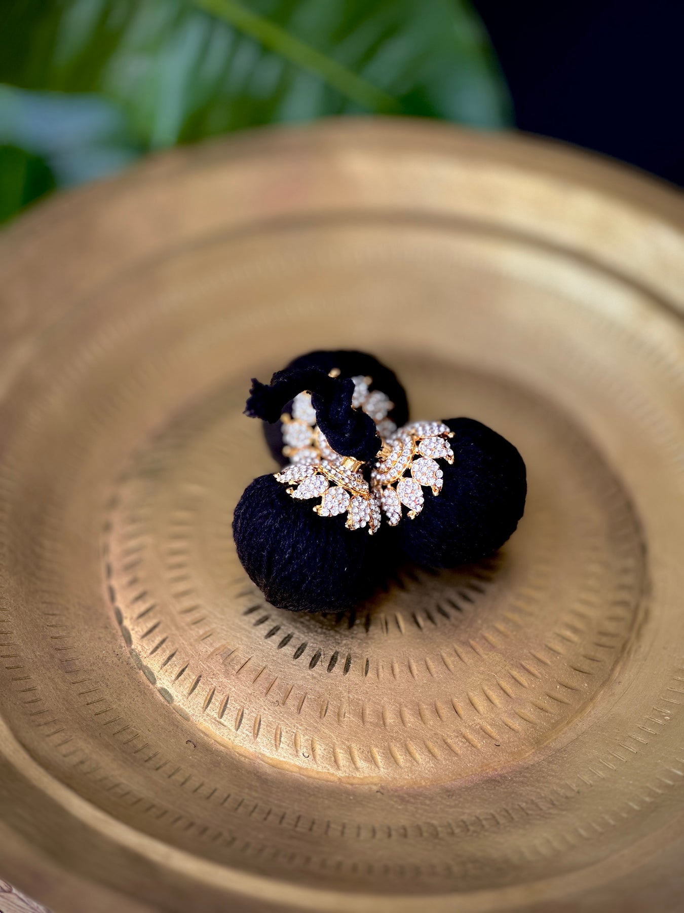 Classic black Kunjalam with pearl and stone embellishments accents adds grandeur and elegance to your outfit