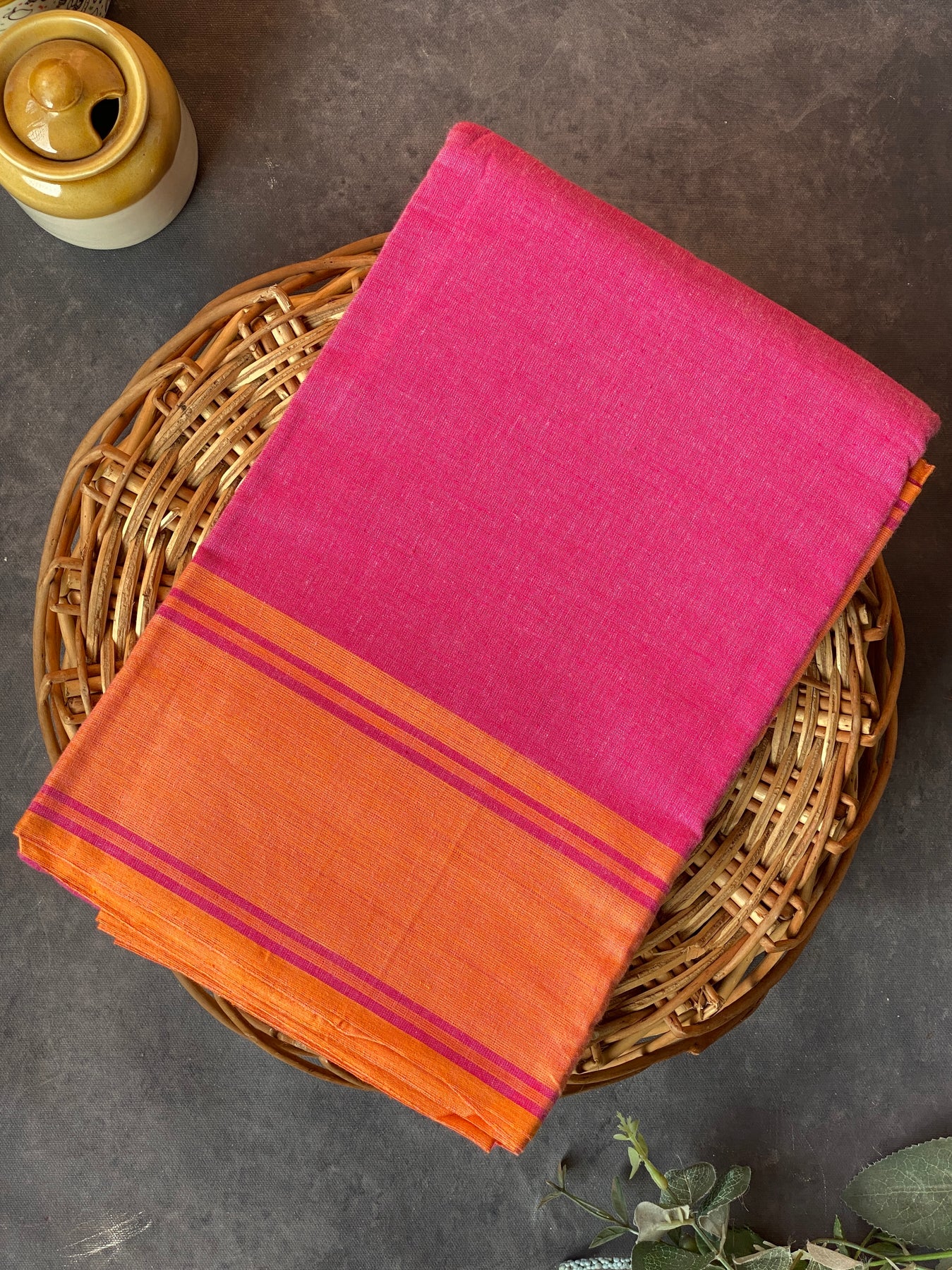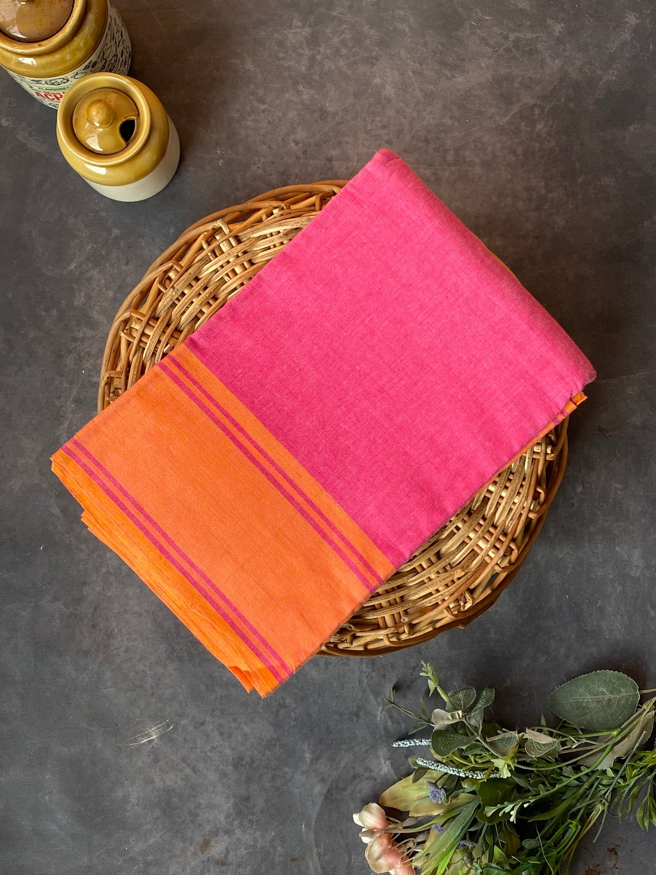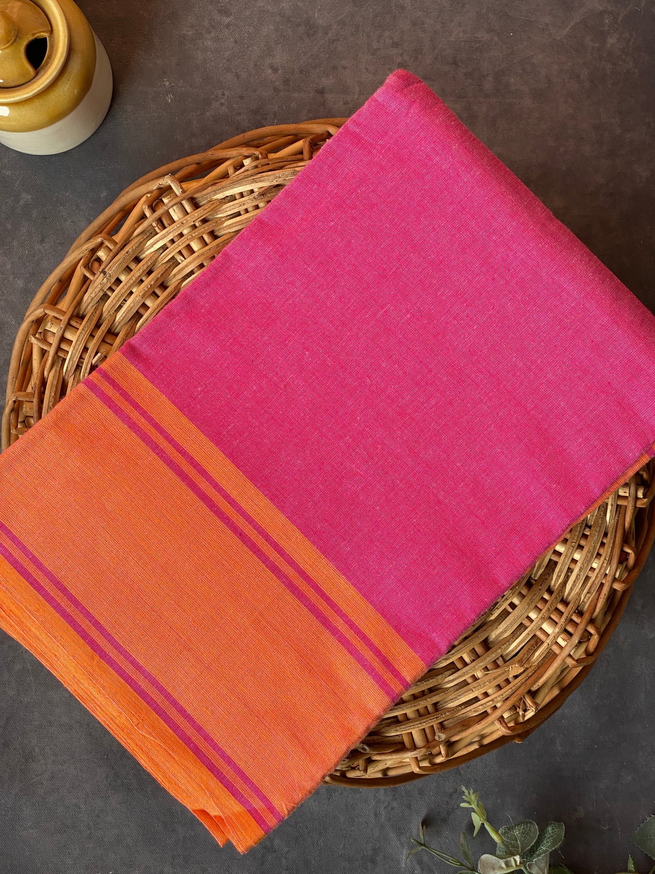 Extra long size traditional cotton practice sarees with bright contrast borders.