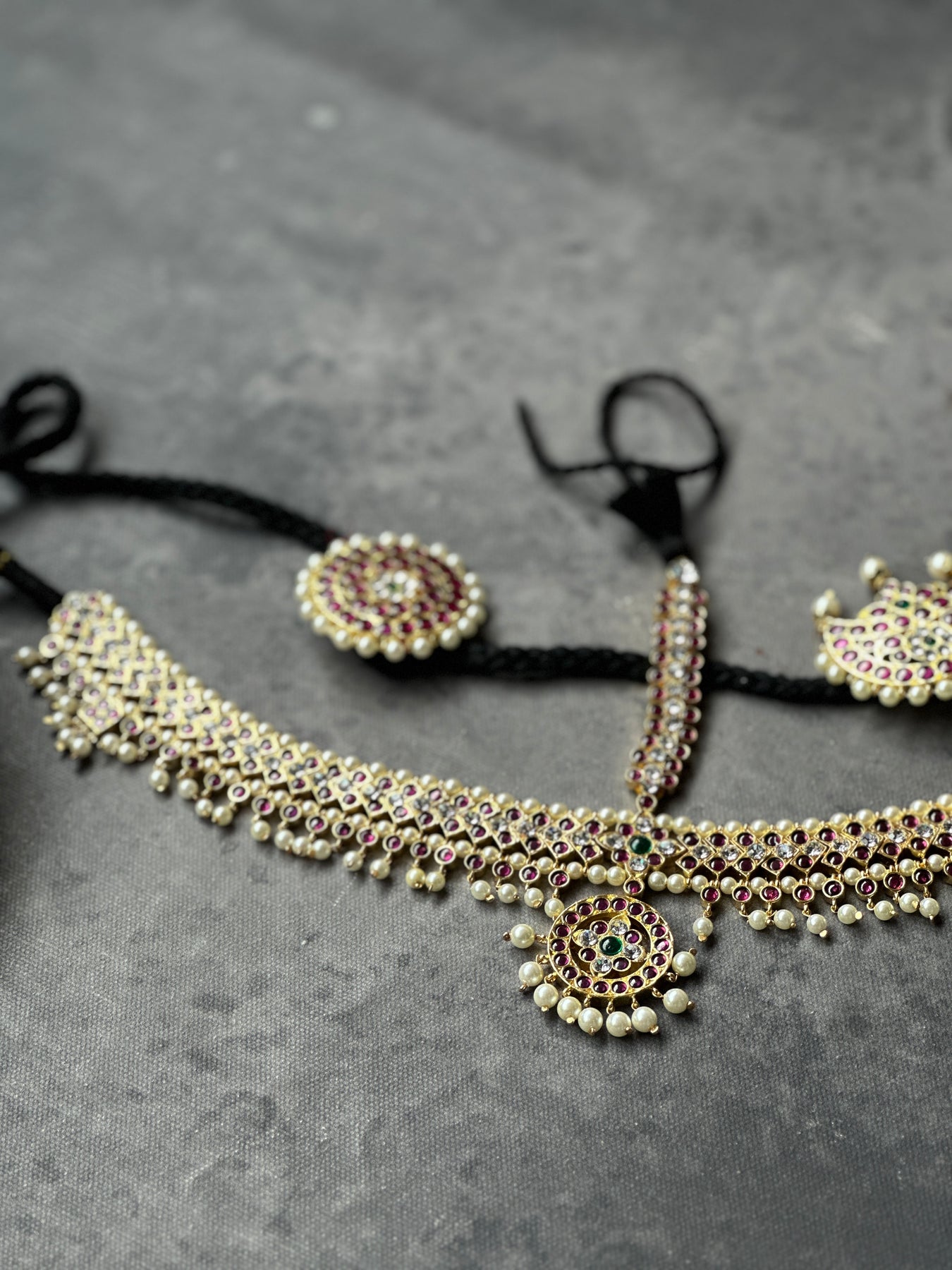 Tarikita identifies that jewellery for Indian classical dance is becoming increasingly inaccessible. Traditional temple jewellery is made in silver, covered in gold leaf and studded with semi-precious stones.